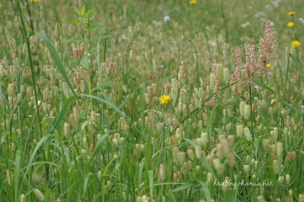 キュウリグサや同じイネ科の植物やタンポポモドキ(?)が咲いています。